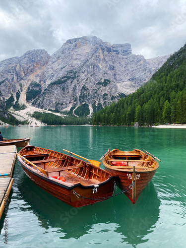 Wooden boats on Lake Braies