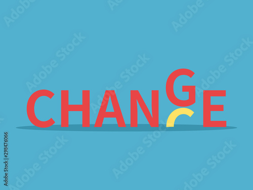Word chance transforming into change on blue background. Success, opportunity and beginning concept. Flat design. Vector illustration. No gradients, no transparency