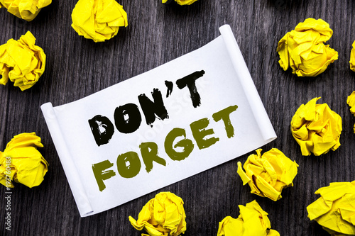 Writing text showing Do Not Forget. Business concept for Don t memory Remider Written on sticky note notepad note notebook book wooden background with yellow sticky folded.
