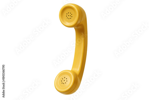 Yellow vintage telephone receiver creating a retro communication and connection symbol on transparent background