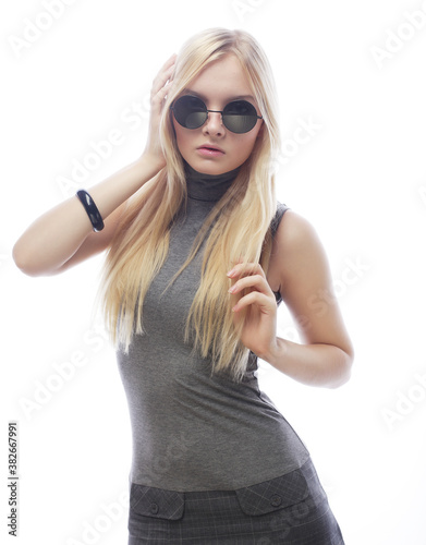 young blond woman with sunglasses