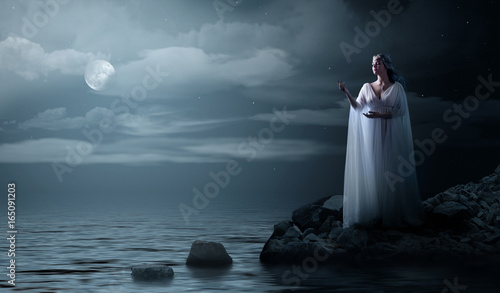 Young elven girl on sea coast