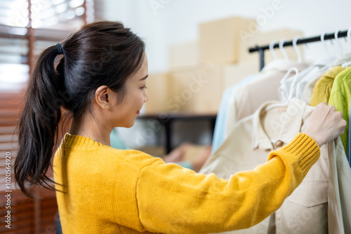 Young Entrepreneurs Discussing Online Retail Strategies in a Modern Living Room Setting with Fashion Merchandise and Digital Devices