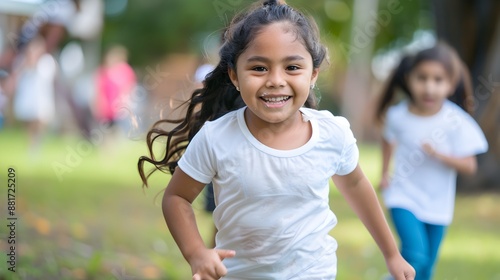 Young latin american girl kid running in a park