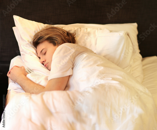 young sleeping man lying on the bed