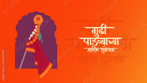 "Gudi Padwyachya Hardik Shubhechha" means Best wishes to Gudi Padwa. With Guddi vector illustration