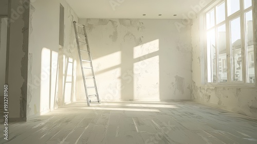 "Empty Room Under Renovation with Sunlight Streaming in"