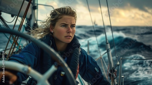 "Adventure on the High Seas: Female Sailor Steers Ship"